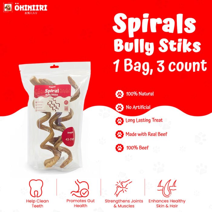 Treat your pup to OKINIIRI Bully Stick Springs — a natural, single-ingredient chew crafted from premium-quality beef pizzle. Responsibly sourced and protein-rich, these delicious spiraled treats deliver pure satisfaction and hours of healthy chewing for your furry friend.